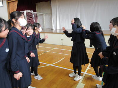 防寒対策で上着を着て、じゃんけん列車を行い、寒い中ですが、とても熱い戦いが繰り広げられていました。学年を越えて戦い、笑い、絆がつながった時間でした。